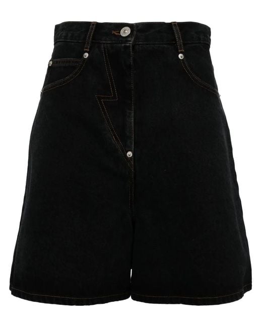 Dark blue cotton denim front button and zip fastening belt loops classic five pockets logo patch to the rear contrast stitching high-waisted thigh-high Size: S. Gender: Female. Material:Cotton. Colour: black