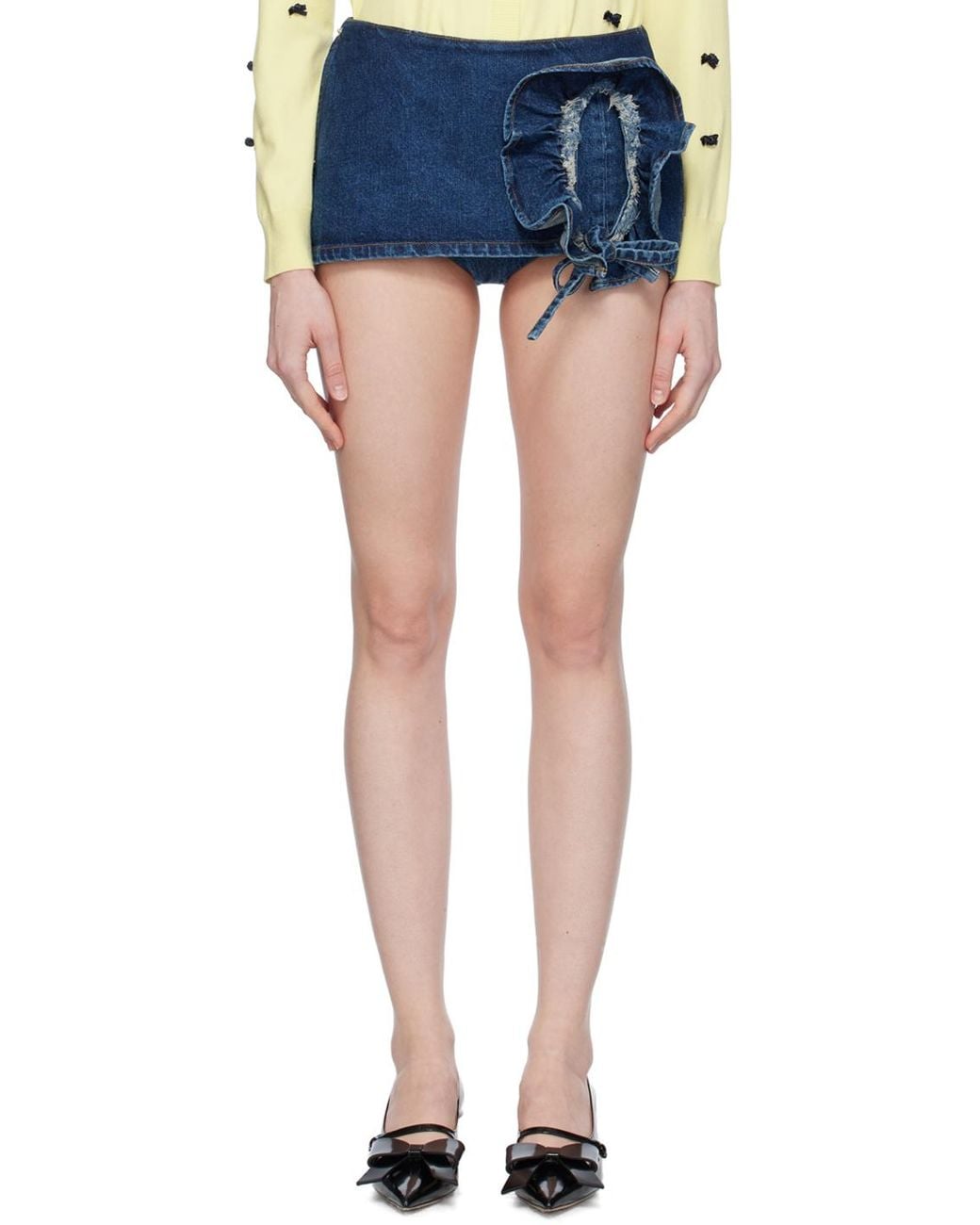 Non-stretch denim skort. · Layered construction · Ruffles trim at front · Self-tie fastening at vented hem · Zip closure at back · Logo patch at back waistband · Brief-style underlay · Partial cotton poplin lining · Contrast stitching in tan Supplier color: Blue Colour: blue