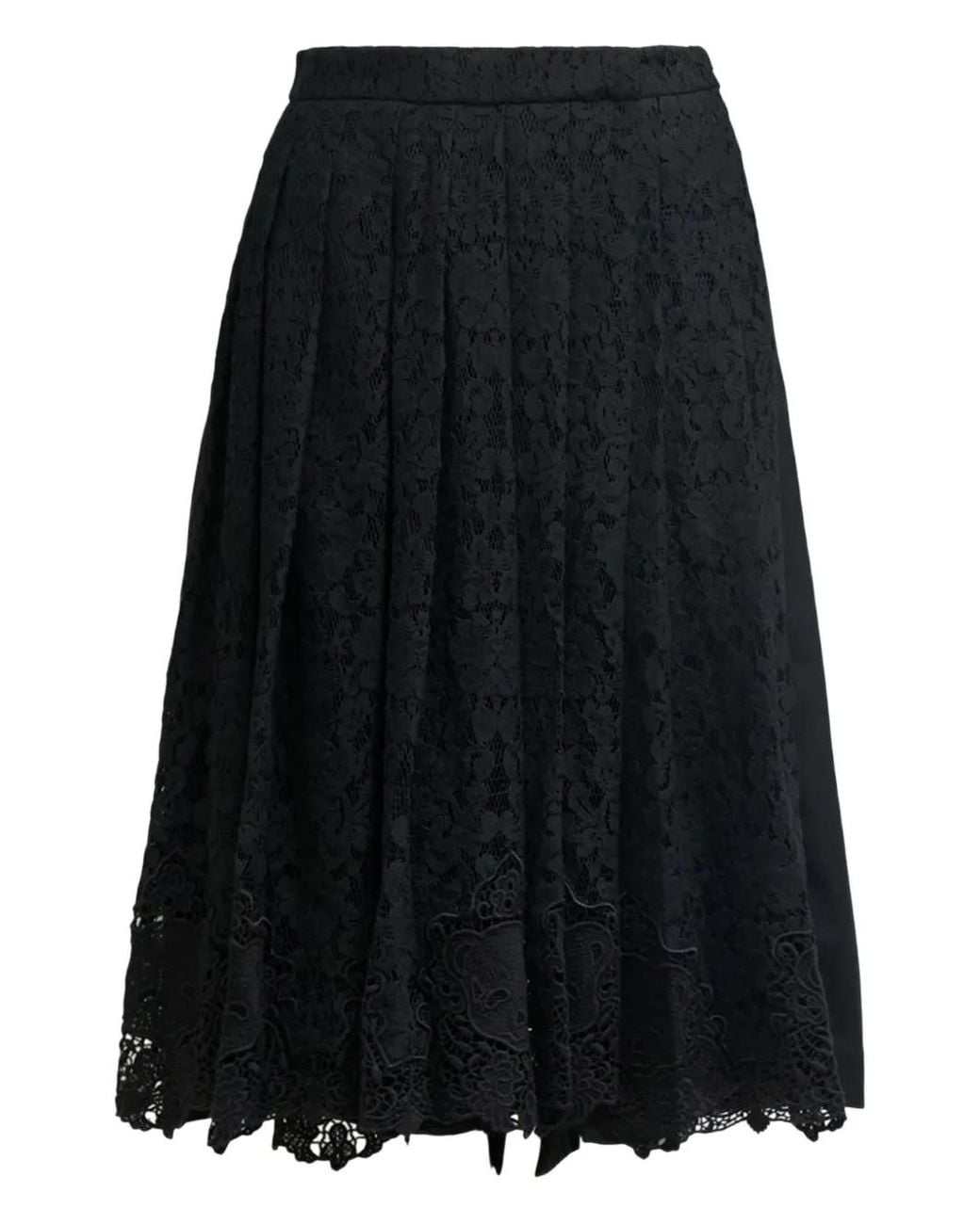 Black lace detail front pleats back pocket scalloped hem Size: XS. Gender: Female. Material:Fabric. Colour: black