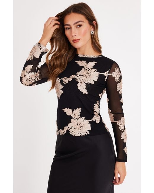 - Mesh finish - Floral applique design - Long sleeves - Cropped fit - Model height: 5'9" - Model wears uk 8 / us 4 / eur 36 - Always check the wash care label - Cool hand wash with mild detergent Colour: black