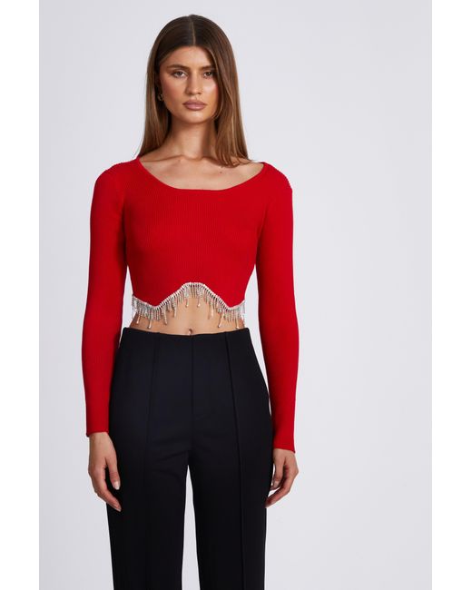 - Knit finish - Ribbed - Diamante trim - Cropped fit - Model height: 5'9" - Model wears uk 8 / us 4 / eur 36 - Always check the care wash label - Cool hand wash with mild detergent Colour: red
