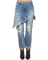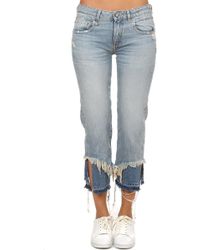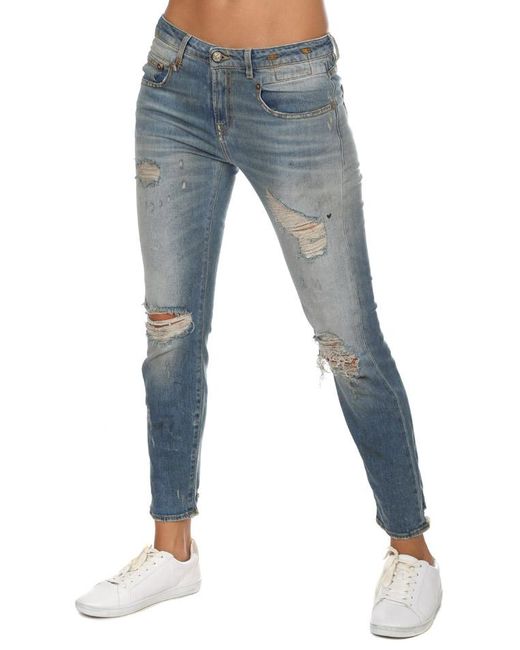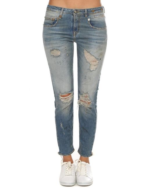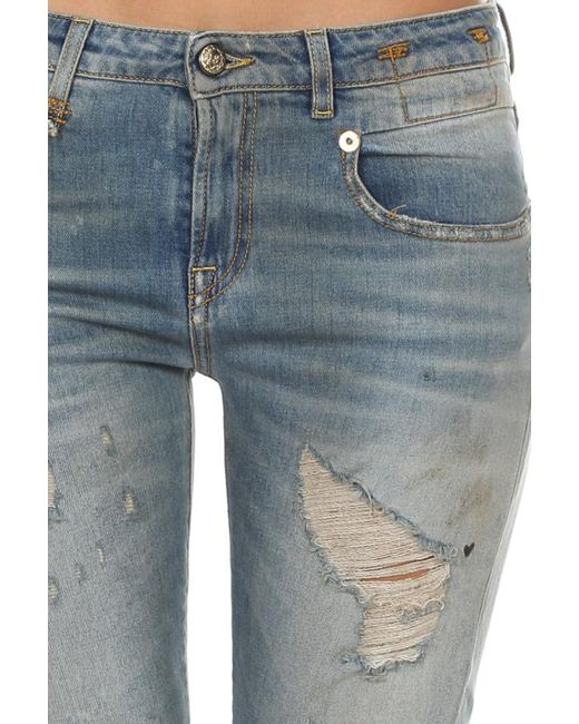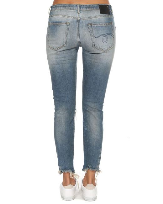 Nbsp;Shredded holes throughout bring a personalized authenticity to these ankle length skinny jeans. Faded denim with a light stretch lends a worn and broken-in edge. 98% Cotton 2% EA. Made in Italy. Machine Wash Cold. Model is 5'9" wearing size 27. Colour: blue