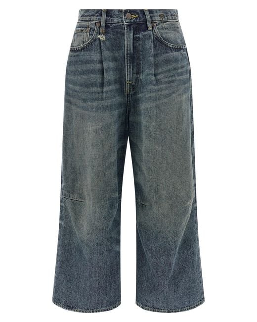 Stonewashed cotton denim jeans with used details, wide and straight leg, crop model, knee pin tucks, front zip and button closure, five pockets, back leather logo tag. Composition: 100% cotton. Size&Fit: true to size fit.