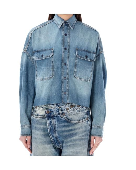 Loose fit, shorter in the front and longer in the back, extended back panel, classic pointed collar, button front, two button patch pockets, long sleeves with buttoned cuffs. Colour: blue