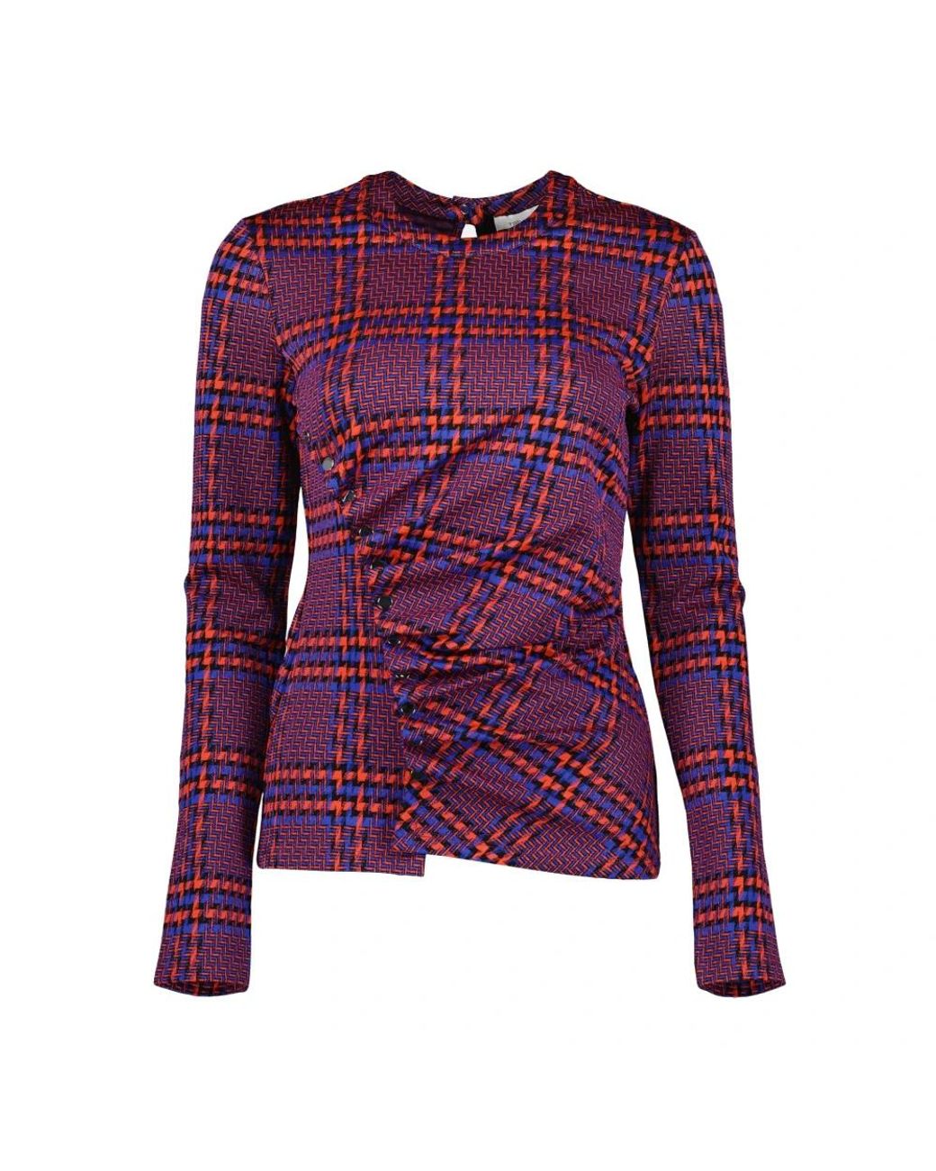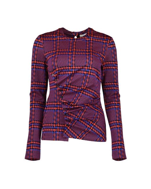 Discover the elegant Plaid Draped Top from Rabanne, a standout piece from the Autumn-Winter 2024 collection. This top features a stylish pleated effect in a purple checkered pattern, perfect for adding a touch of sophistication to your wardrobe. Key attributes: Purple | Draped style | Pleated effect | Checkered pattern |