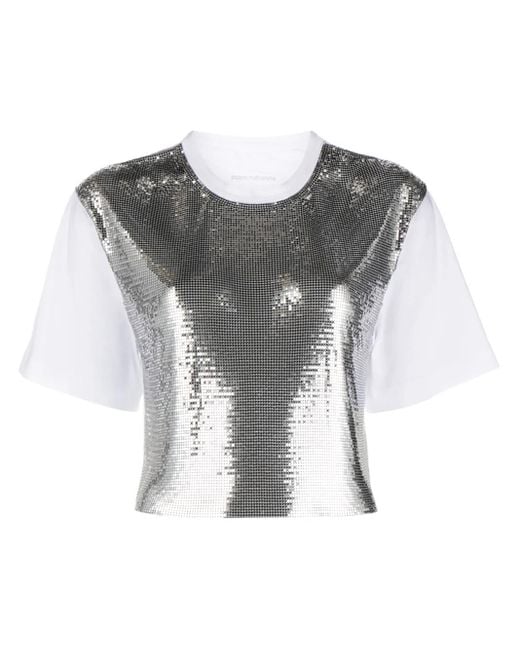 White/silver-tone cotton aluminium mesh design chain-link detailing crew neck short sleeves cropped Size: M. Gender: Female. Material:Aluminium/Cotton. Colour: grey