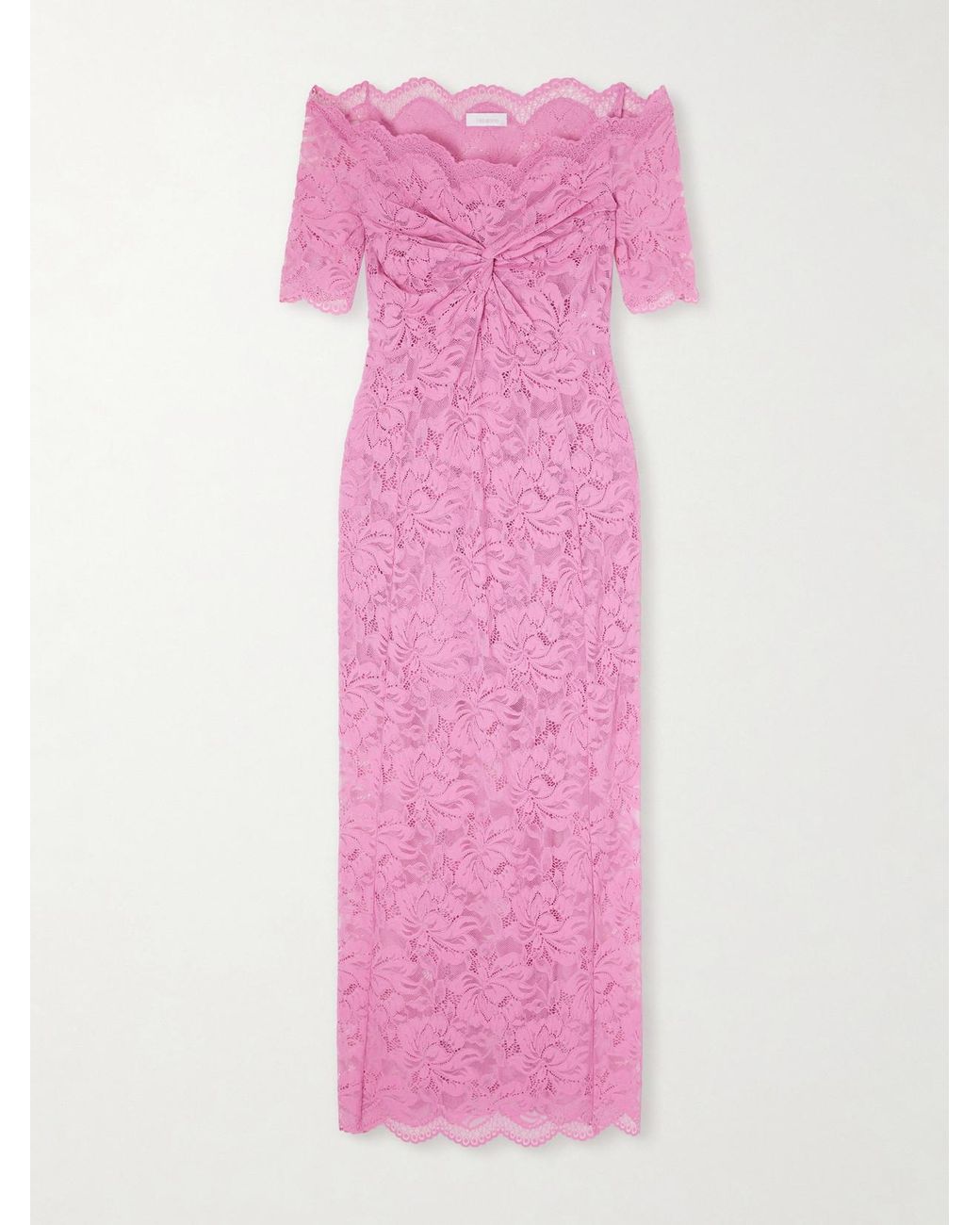 - Off-The-Shoulder Scalloped Lace Midi Dress