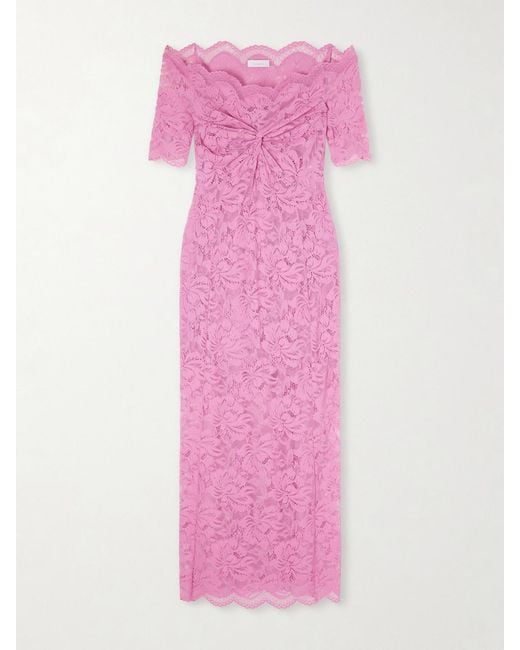 Women's Pink Off-The-Shoulder Scalloped Lace Midi Dress
