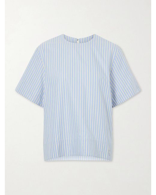 Rabanne's T-shirt has a nautical twist. Inspired by shirting, it's cut from crisp cotton-poplin and decked with all-over stripes in a contemporary boxy fit. Colour: blue