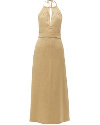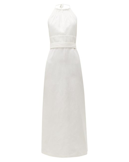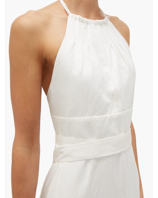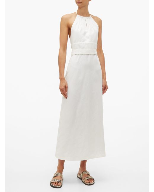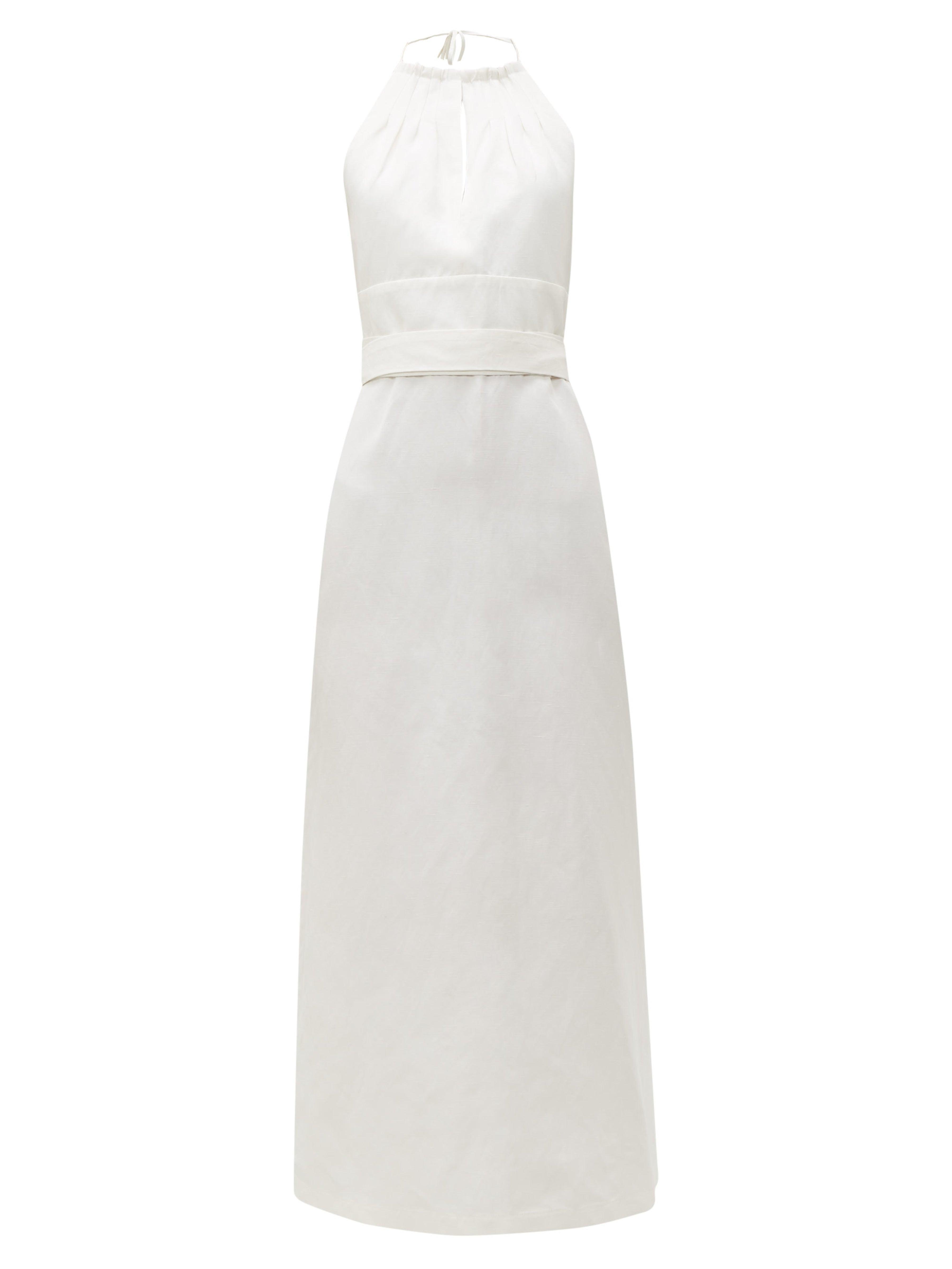 Women's White Split Front Halterneck Slubby Silk Blend Dress