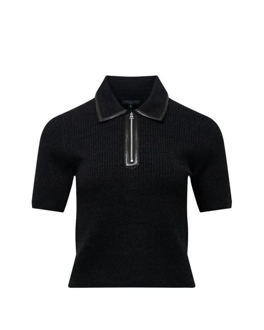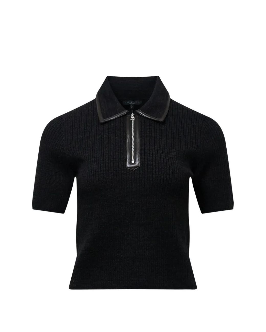 Caterina Ribbed Wool-Blend Polo Top - Black