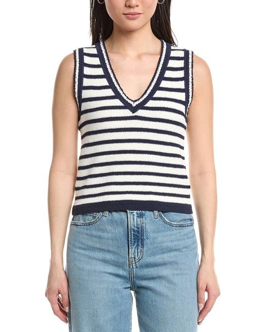 About the brand: For more than twenty years, rag & bone has been committed to making timeless yet modern fashion with an understated edge. Inspired by New York with a strong focus on quality and comfort, every rag & bone style is distinctly original. Meghan Stripe Vest in ivory multicolor with V-neck and ribbed trim Approximately 21in from shoulder to hem 44% cotton, 35% nylon, 17% viscose, 4% polyester Dry clean only Imported