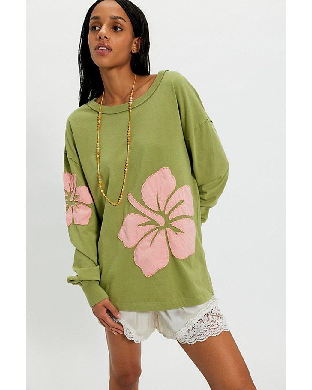 Women's Green Hibiscus Moon Long Sleeve Tee