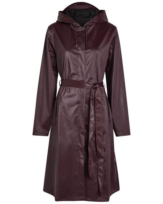 Women's Purple Belted Hooded Longline Waterproof Jacket