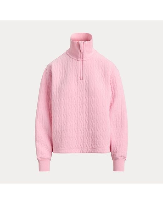 Crafted with cotton-blend fabric featuring an allover quilted cable motif, this quarter-zip pullover has a relaxed silhouette with side zip vents and is detailed with our signature “RLX” logo silicone-printed at the shoulder. Colour: pink