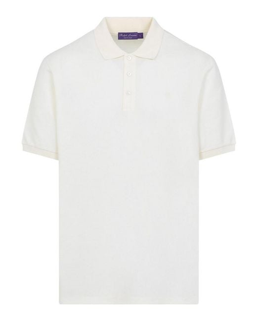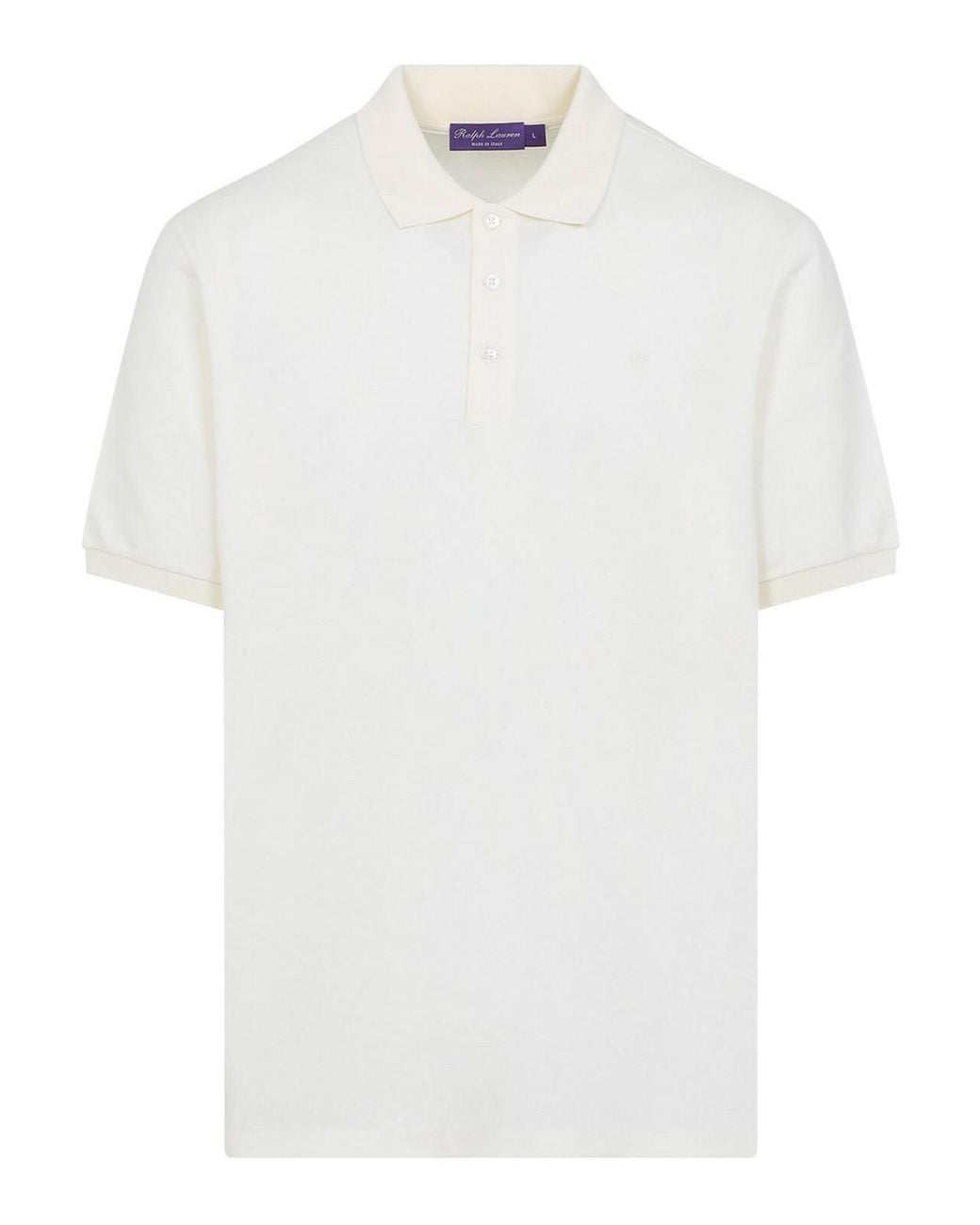 Ralph lauren purple label short sleeve cream cotton polo. cream cotton, polo collar, classic placket with three button closure, short sleeves, straight hem. Colour: white