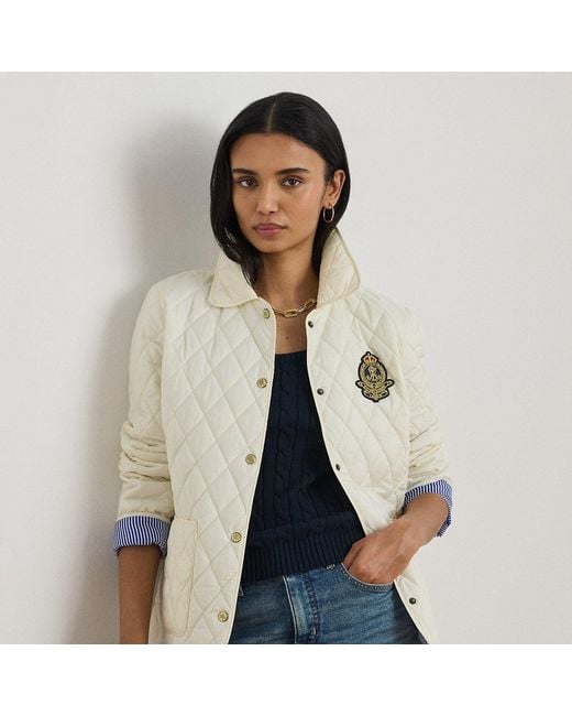 Women's White Crest-Patch Diamond-Quilted Jacket