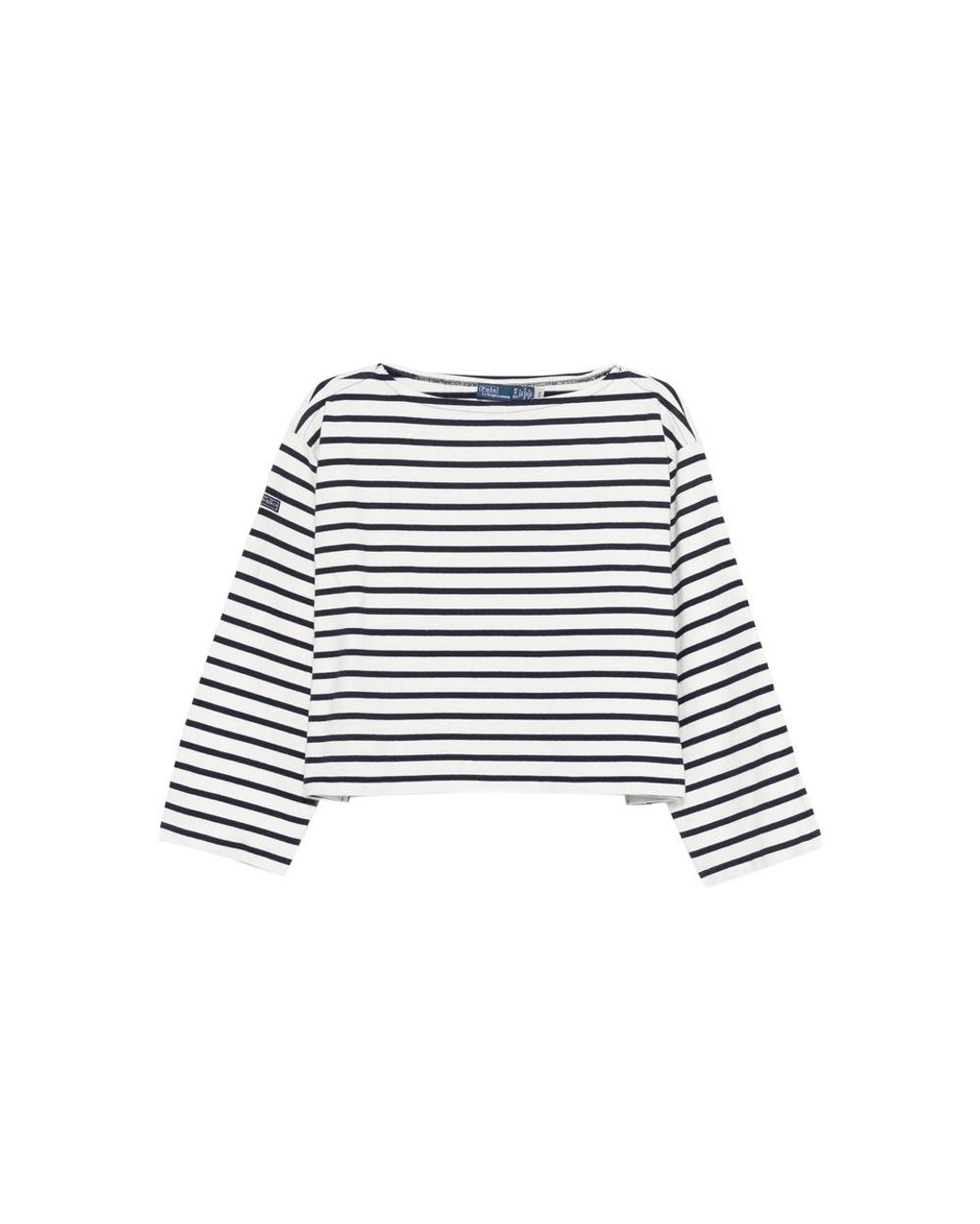Blue and white striped logo patch boat neck long sleeves cropped Gender: WomenMaterial: COTTON: 100.0%Color: MulticolorMade in: ImportedProduct ID: 211959103004 NAWWH*Import tax/duty will be calculated at checkout (If applicable) Colour: white