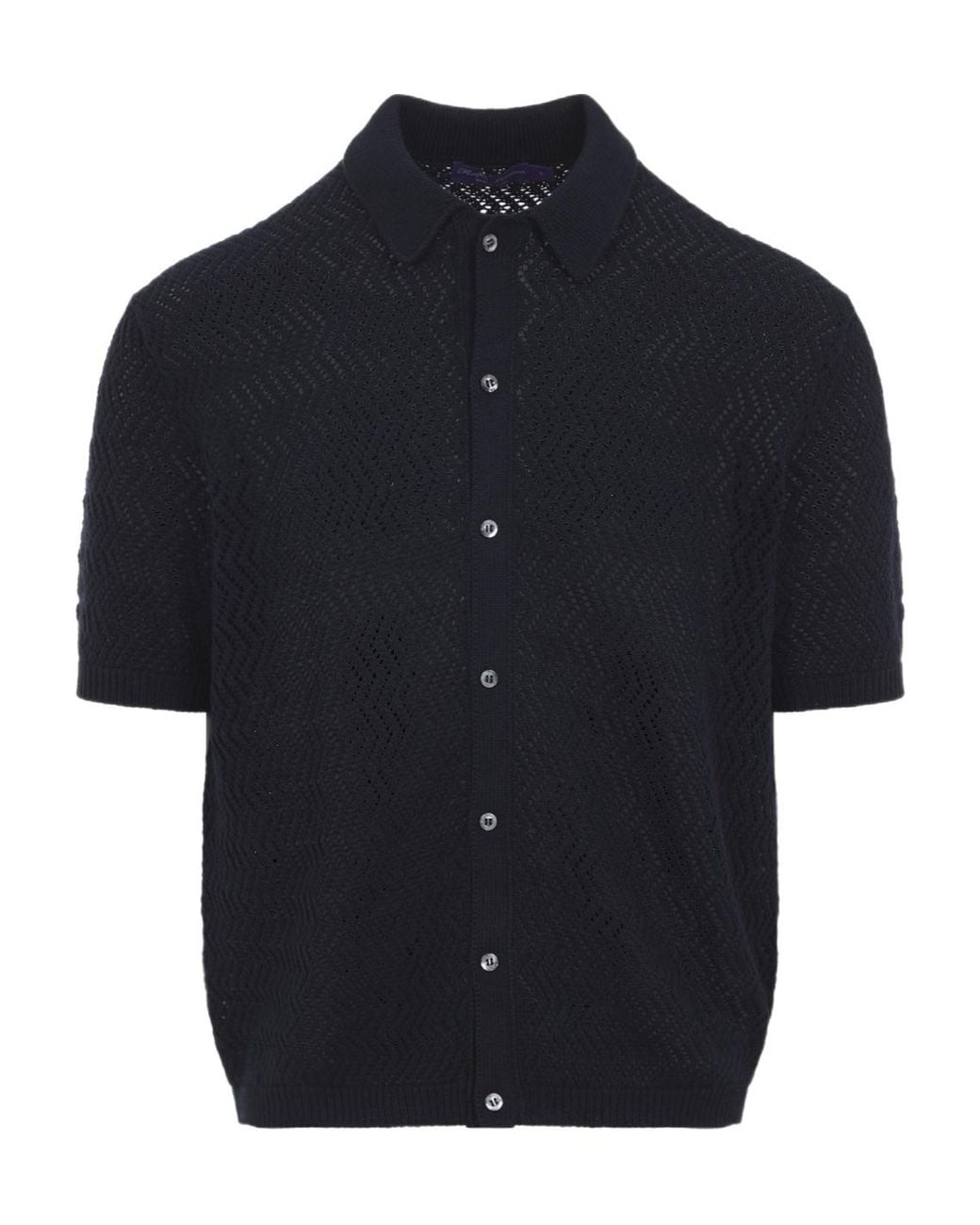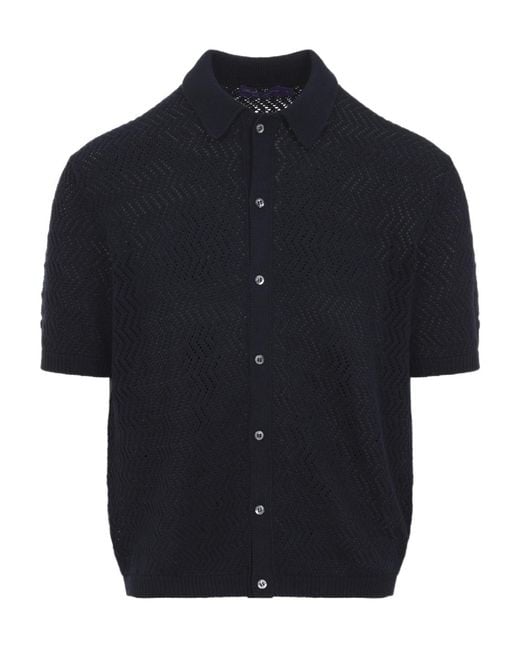 Men's Blue Openwork Polo Knit Top