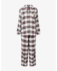 Ralph Lauren Women's Purple Plaid Cotton-Blend Henley Pyjama Set