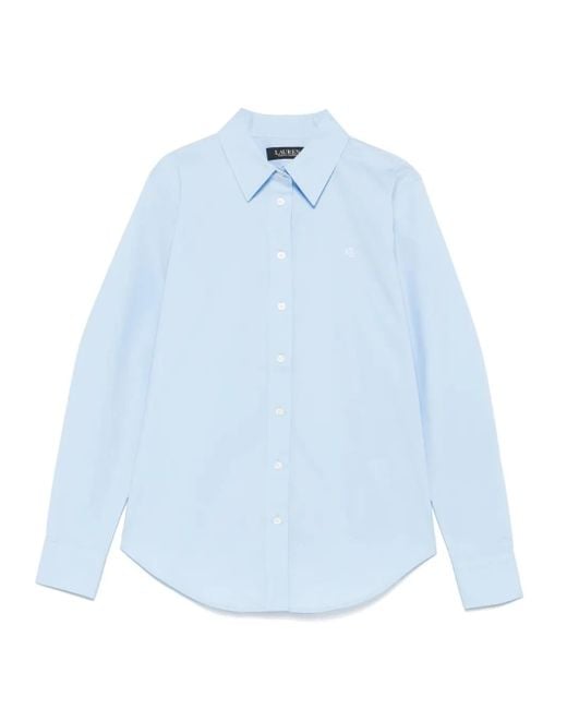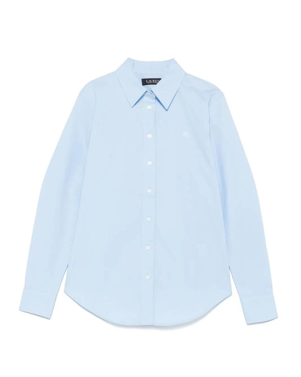 Light blue front button fastening buttoned-cuff sleeves embroidered logo at the chest curved hem Size: XL. Gender: Female. Material:Elastane/Cotton. Colour: blue