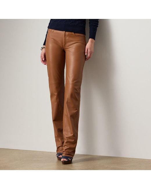 Emulating the casual allure of classic jeans, the Scottie trouser is designed with a mid-rise straight-leg fit, five-pocket styling, a signature shank button and a lambskin patch at the back waist, which is embellished with our signature “RL” hardware. A supple lambskin fabrication is selected for its luxurious sensibility, while our signature jacquard lining offers comfort. Colour: brown