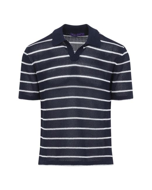 Polo Shirt Short Sleeves Striped Ribbed Collar - Blue
