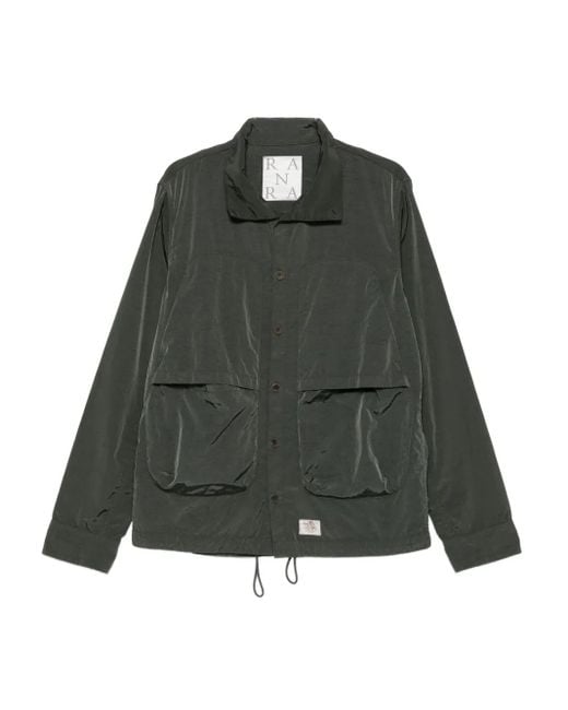 Men's Green Button-Fastening Patch-Pocket Shirt Jacket