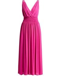 Go to YOOXFlared dress, jersey, metallic, solid colour, gathered, v-neck, long sleeves, unlined, stretch, machine wash or dry clean, do not bleach, do not tumble dry , Color: Garnet , Size: S Colour: purple
