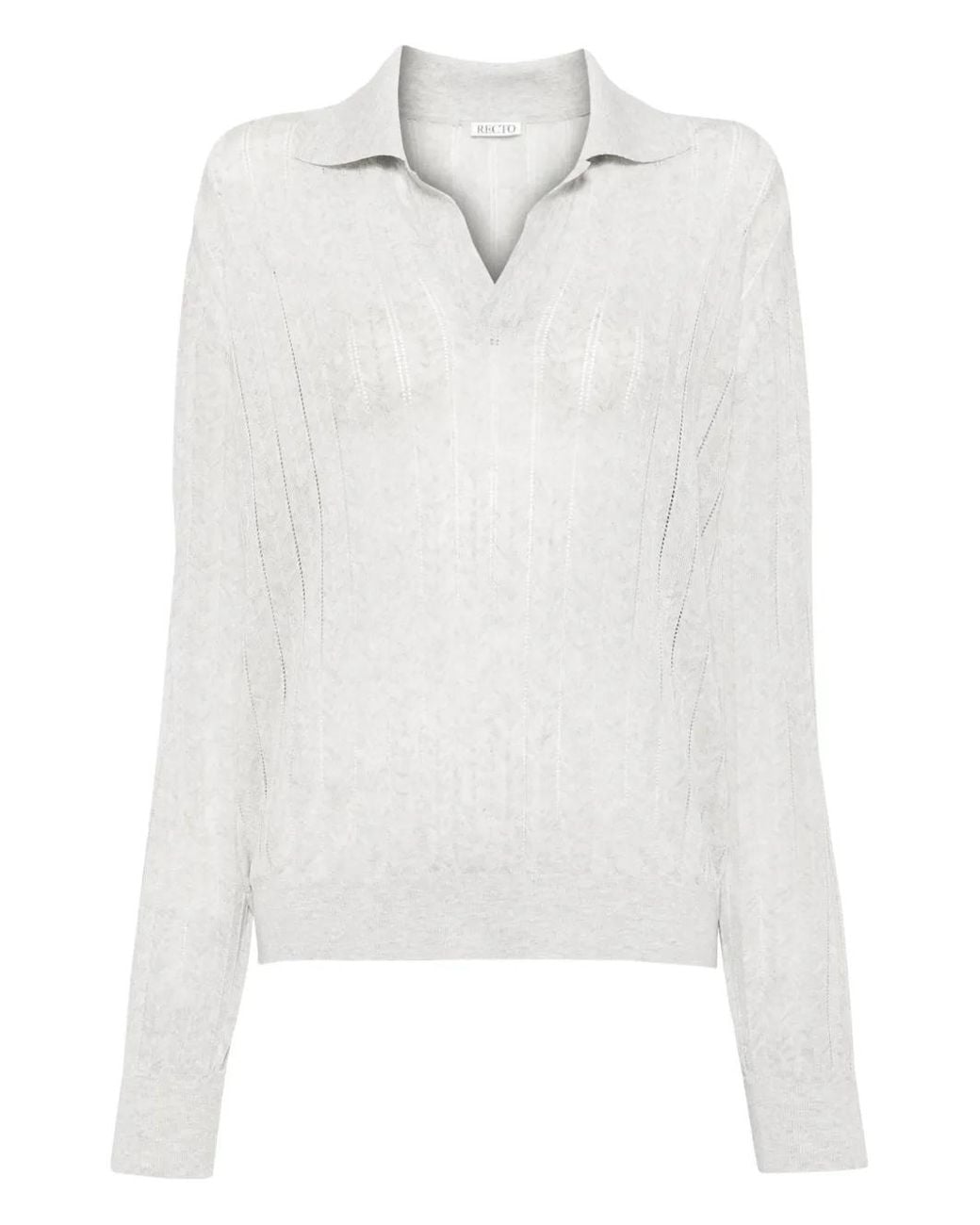 Cool grey polo collar ribbed cuffs and hem semi-sheer construction Size: S. Gender: Male. Material:Polyamide/Viscose. Colour: white
