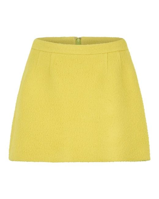 RED designer Short Skirt with a sleek, versatile silhouette crafted from virgin wool. Designed for easy styling from day to night, it features a high waist and a back zipper for a modern, comfortable fit. Key attributes: Yellow | Virgin wool | Back zipper | High waist | Sleek line | Minimal, versatile design | Soft fabric | Dimensions & fit: High-waisted fit | Composition & care: 100% Virgin wool | Easily washable; ideal for everyday use.