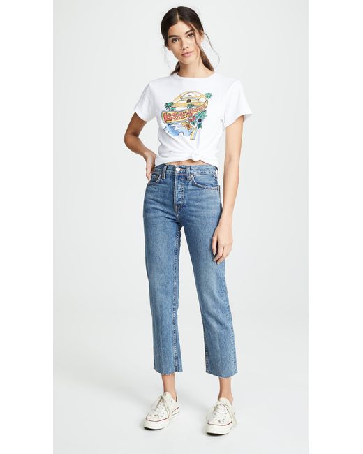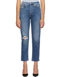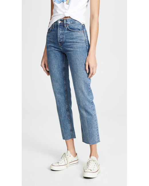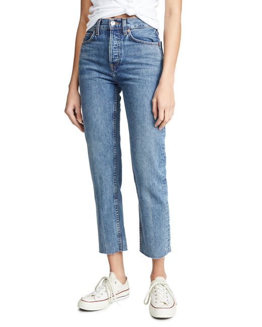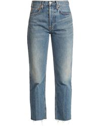 Fabric: Rigid non-stretch denim. Heavy fading, whiskering,. Raw cuffs. Button fly. 5-pocket styling. Shell: 100% cotton. Wash cold. Made in the USA. Style #REDON30046. Rise: 11.75in / 30cm. Inseam: 27.5in / 70cm. Leg opening: 15.75in / 40cm. RE/DONE puts their knowledge of all things vintage to good use with these jeans, which score points with us because of their quality denim and expert fading. Colour: blue