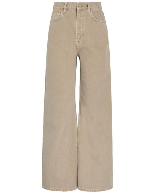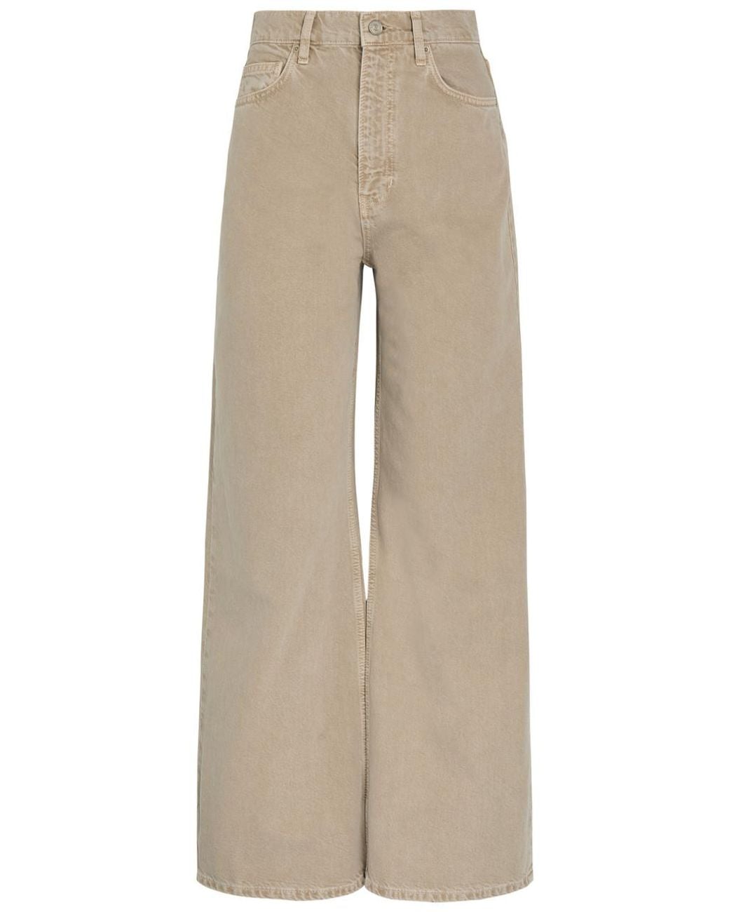 Info & Care Reformation denim jeans High-rise fit, wide-leg cut, belt loops, five pockets Partially concealed zip and button fastenings at front 100% regenerative cotton Machine wash cold inside out to avoid colour transfer Size & Fit Front rise:;13;inches/ 33cm Inside leg length: 31 inches/ 79cm Midweight Model is 5'10""/ 178cm and wears a size W27 Colour: natural
