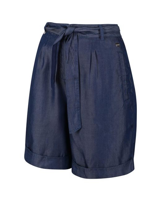 The women's Samira Short from Regatta are made of light and airy woven fabric with a garment wash finish for a softer feel. With a tie fasten waist, front darts and a small Regatta metal badge on the left pocket. Colour: blue