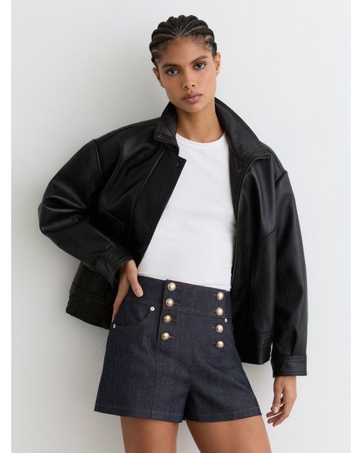 - Button-Detail Denim Shorts