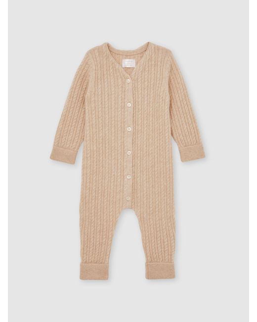 Reiss Neutral Paris 100% Cashmere Cable-Knit Sleepsuit Colour: natural