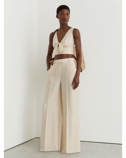 Women's Natural Cream & Pinstripe Wide-Leg Trousers