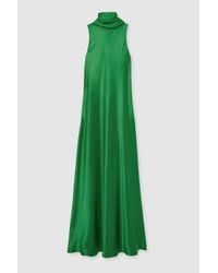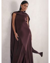 Go to ReissThe Fae dress exudes occasion-ready elegance in emerald green satin. A draped cowl neckline and fluid cape-style design create a beautifully flowing silhouette, enhanced by the fabric's lustrous sheen for a refined, effortless
