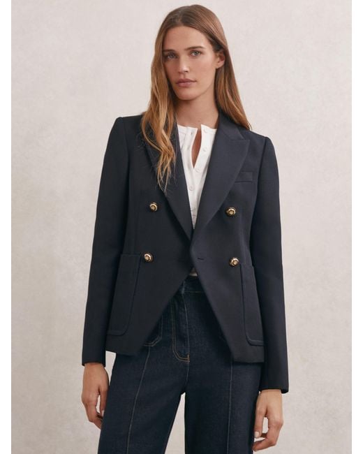 Women's Blue Gigi - Navy Petite Wool-blend Double-breasted Blazer, Us 10