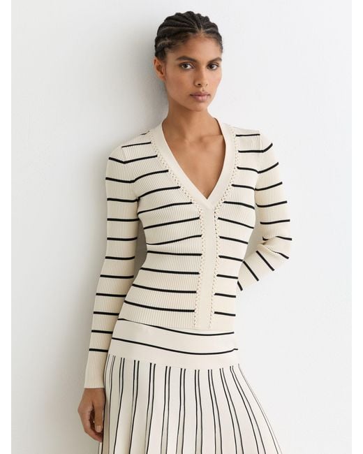 Women's Natural Stripe Craft-Stitch Rib-Knit Top