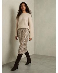 The Miley pencil skirt is crafted from butter-soft leather, offering a sleek, midi-length silhouette. The high waistline creates a flattering shape, whilst a front slit adds subtle movement. 100% leather. High waistline. Front slit. Lined. Zip to reverse Colour: natural