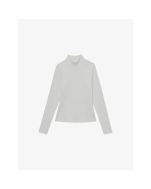 Reiss stretch-cotton top95% cotton, 5% elastaneSlim fit, funnel-neck, long sleeves, ribbed textureMachine wash mildTrue to sizeModel is 5ft 10in/1.78m and wears a size smallLightweight, slight stretch Colour: white