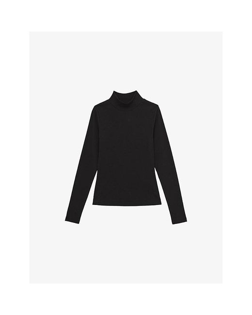 Reiss stretch-cotton top95% cotton, 5% elastaneSlim fit, funnel-neck, long sleeves, ribbed textureMachine wash mildTrue to sizeModel is 5ft 10in/1.78m and wears a size smallLightweight, slight stretch Colour: black