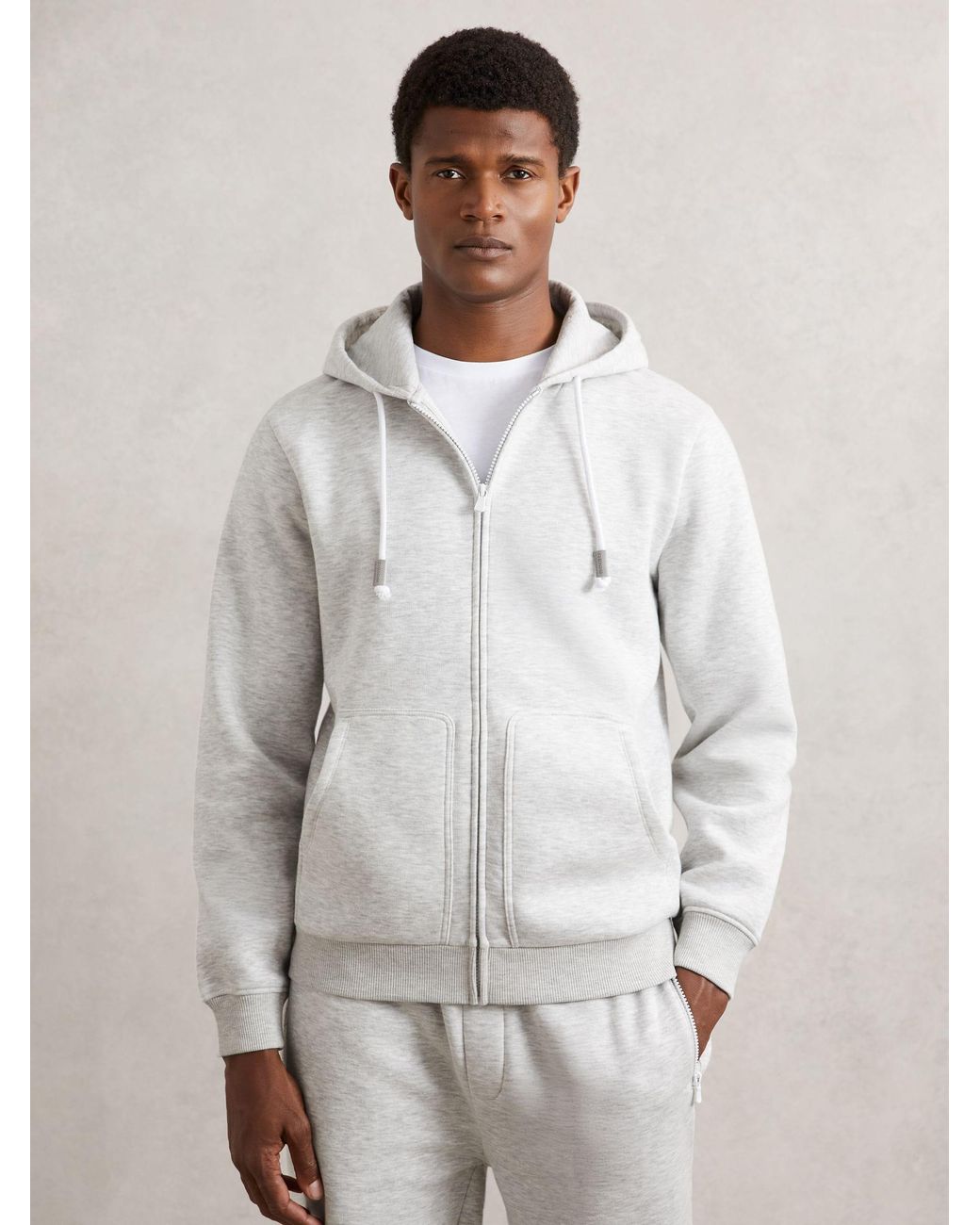 Men's Natural Cotton-Blend Zip-Through Hoodie