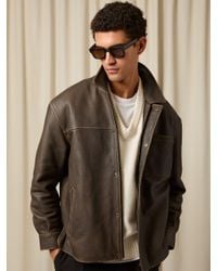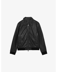 Reiss Men's Black Denim Leather-Collar Worker Jacket