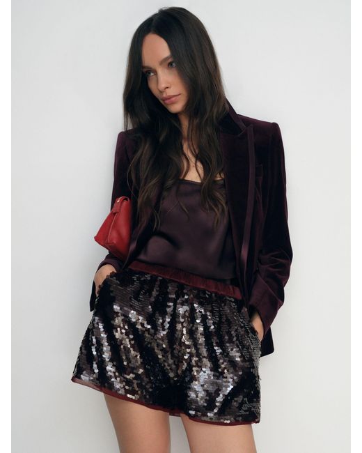 Reiss Burgundy Spence Sequin Shorts Colour: black