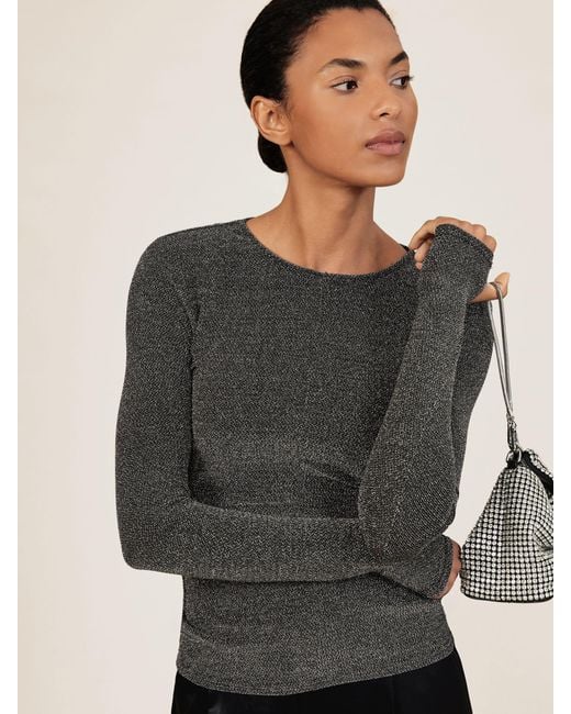 Women's Grey Metallic-Knit Long-Sleeve Top