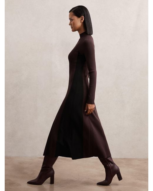 Women's Zaya - Plum Purple/black Petite Knitted Contrast-panel Midi Dress, L (us 12-14)