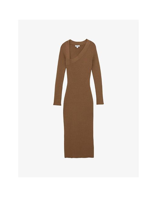 Women's Brown Zeta Asymmetric-Neck Knitted Midi Dress