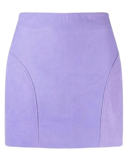 Women's Purple Corduroy Leather Mini Skirt